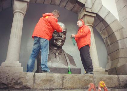 Молодые коммунисты Центрального райкома КПРФ во главе с организатором акции - первым секретарем районного Комитета И.А. Кадниковым, решили не ждать должной реакции властей и сами взялись за щетки и моющие средства. Памятник и до того существенно пострадал, а в результате воздействия растворителя, был испорчен верхний слой краски. Тогда активисты решили идти до конца и полностью перекрасить бюст. Тут же была отправлена бригада за покупкой краски нужного цвета, а оставшиеся продолжили удалять следы вандализма.