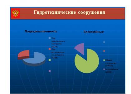 Сегодня государственный реестр фиксирует только малую часть гидротехнических сооружений. Почему? Потому что, принимаются только те сооружения, которые имеет соответствующую документацию, и они гарантируют безопасность этих сооружений. А все остальное функционирует, как говорится, само по себе. Можно с уверенностью говорить, что к некоторым сооружениям 100 лет рука человека не прикасалась. Здесь надо наводить порядок, провести инвентаризацию всех гидротехнических сооружений. Все они должны находиться под соответствующим контролем - федеральном, региональном или местном, чтобы не могли повториться трагедии подобные Крымску.