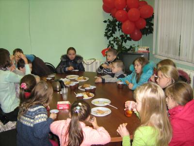 Завершающим мероприятием стало чаепитие в горкоме КПРФ г.Костромы. Там дети посмотрели через проектор, специально «освоенный» родителями к данному мероприятию, мультики «Маша и медведь», фотографии с прошедших акций, а также попили чай с печеньем и конфетами. Главное – познакомились, пообщались.