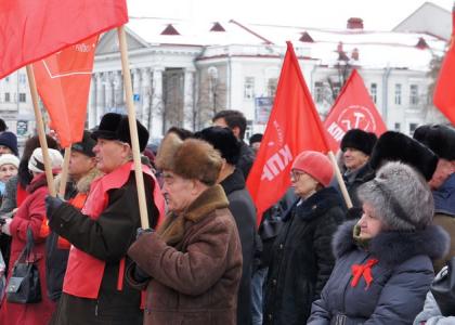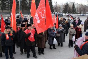 Несмотря на то, что за ночь резко похолодало - до -16 градусов, а вчерашняя оттепель обернулась сильным гололедом, людские ручейки стали стекаться на центральную площадь областного центра примерно за час до начала митинга. Всего в нем участвовало свыше 200 активистов и сторонников КПРФ.