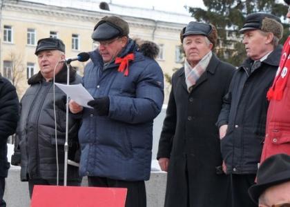 Вел митинг член ЦКРК, председатель областной КРК КПРФ, начальник штаба Союза советских офицеров А.Г.Попов. Он предоставил слово первому секретарю Курганского обкома КПРФ В.А.Кислицыну, зачитавшему собравшимся поздравление Председателя ЦК КПРФ Г.А.Зюганова.