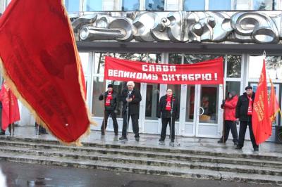 Коммунисты и их сторонники прошли праздничной колонной по улицам города, а затем провели митинг на площади перед Дворцом культуры.