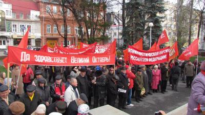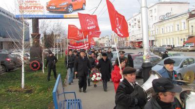 Сегодня, 7 ноября, юбилейную, 95-ю годовщину Великой Октябрьской социалистической революции в Уфе отмечали не совсем обычно. Шествие и митинг состоялись в исторической части города. Красочная колонна с красными флагами и транспарантами под духовой оркестр прошла от улицы Карла Маркса по улице Коммунистической в сквер имени В.И.Ленина, к восстановленному памятнику вождю пролетариата, в открытии которого 2 ноября 2011 года участвовал лидер коммунистов Российской Федерации Г.А. Зюганов.