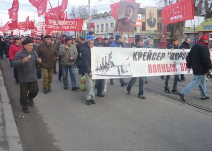 Над митингующими развевались красные флаги и лозунги: «Великому Октябрю – Слава!», «Вернем социальные завоевания Октября!», «Власть – народу! Собственность – трудящимся!», «Нет росту цен и тарифов!», «Программу КПРФ – в жизнь!», «Закон КПРФ об образовании в жизнь!», «За достойную жизнь! За социальную справедливость!», «Вперед – к социализму!» и другие. Люди скандировали: «Ленин– Партия –Социализм».