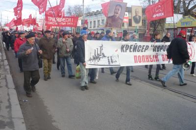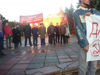 Над митингующими развевались красные флаги и лозунги: «Великому Октябрю – Слава!», «Вернем социальные завоевания Октября!», «Власть – народу! Собственность – трудящимся!», «Нет росту цен и тарифов!», «Программу КПРФ – в жизнь!», «Закон КПРФ об образовании в жизнь!», «За достойную жизнь! За социальную справедливость!», «Вперед – к социализму!» и другие. Люди скандировали: «Ленин– Партия –Социализм».