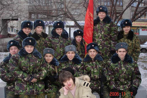 Молодые участники митинга, школьники 142 школы заявили, что не только знают этот праздник, а очень уважают его и для них честь нести Красное Знамя первыми в колонне.