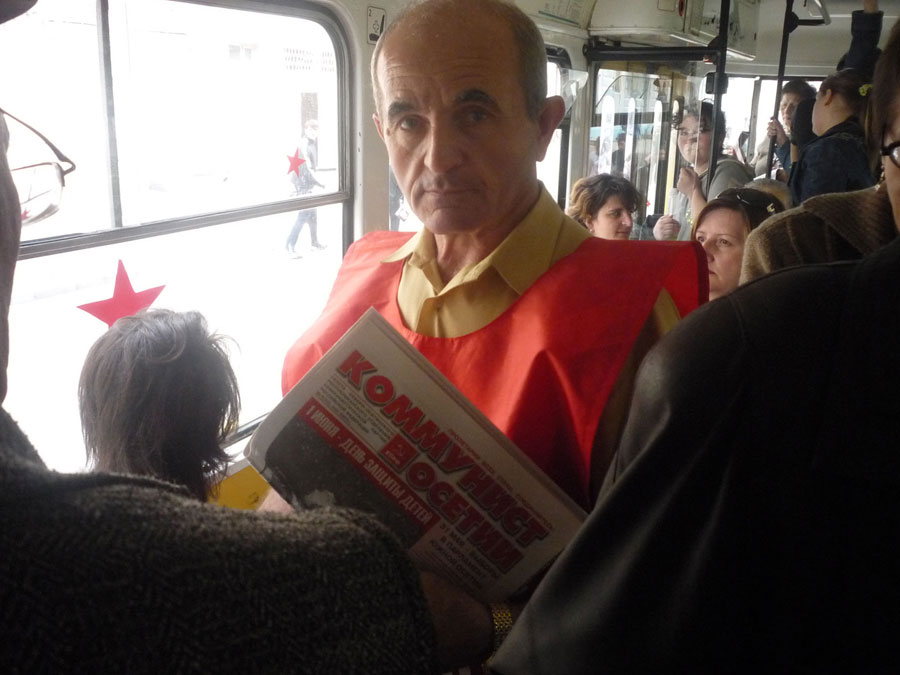 Сегодня жители г. Владикавказа пользуются бесплатным проездом на трамваях Владикавказского ТТУ с баннерами « КПРФ - партия трудового народа». Четыре номера объезжают весь город. В салонах раздают партийную литературу, листовки, спецвыпуск газеты «Правда», очередной выпуск газеты «Коммунист Осетии».