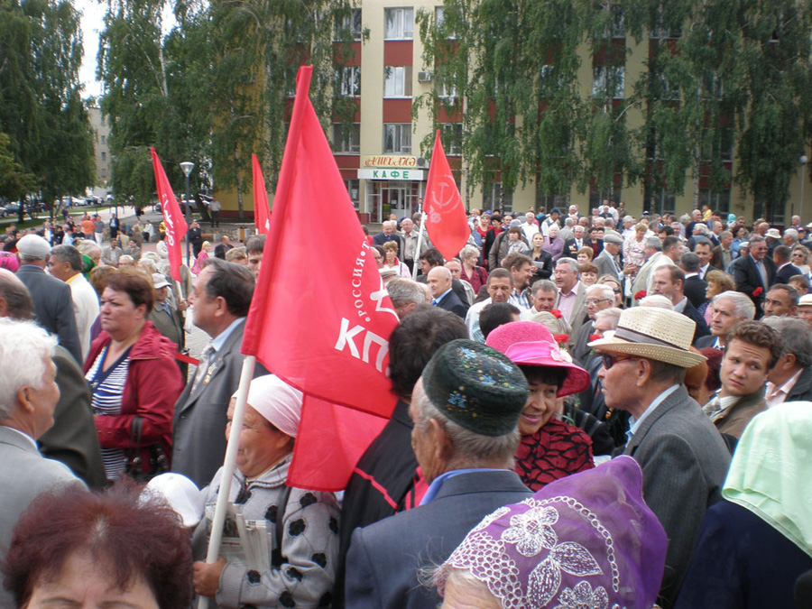 К выстроившемся, в первом ряду, с флагами коммунистам подошел депутат Госсовета РТ, генеральный директор крупнейшей строительной компании «Камгэсэнергострой» А. Евдокимов, который также попытался сначала начальственным тоном, затем более обходительным оттеснить коммунистов на задний фланг. Но челнинские коммунисты были неотступны и заявили, что они были коммунистами в советские времена и остались ими сегодня, и в отличие от некоторых не продавались. В ответ депутат пролепетал, что он тоже не продавался и вынужден был отойти. Коммунистам внушали, что они загораживают проход, чтобы осуществить возложение венков, цветов к памятнику, хотя в действительности было совсем не так.