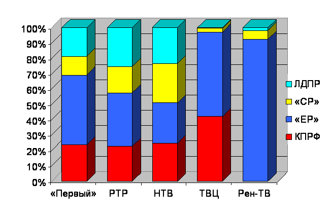 | Телеканал | КПРФ | «ЕР» | «СР» | ЛДПР | |