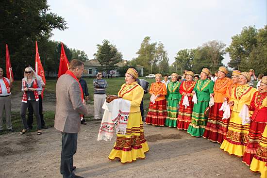 Следует отметить, что на всем протяжении пути участников автопробега местные жители встречали очень тепло, по старинной традиции хлебом-солью с выступлениями коллективов народной песни и пляски.