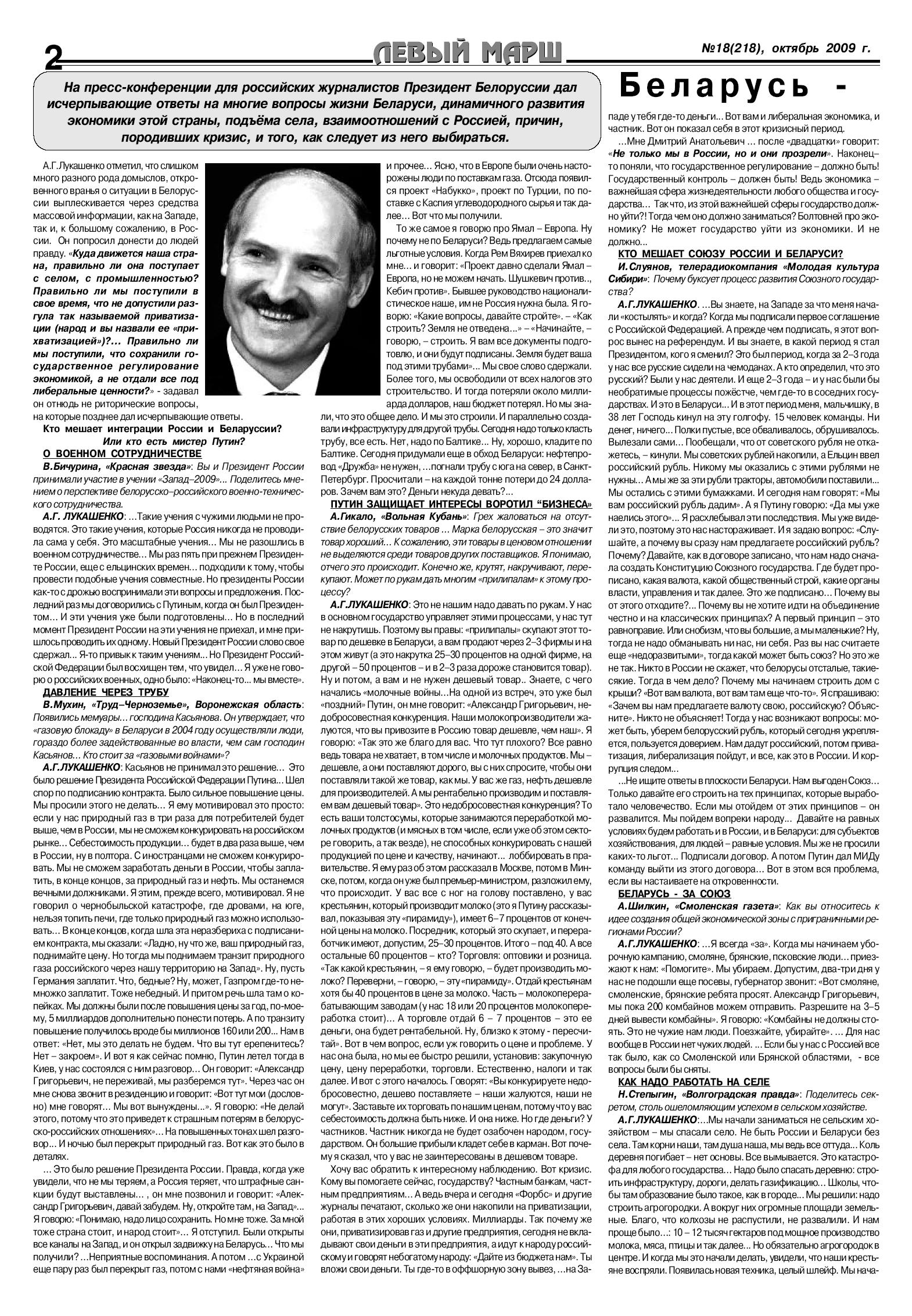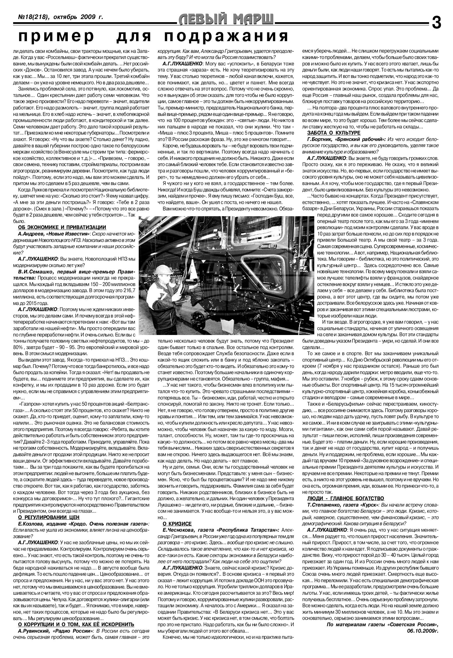 «Беларусь – пример для подражания» - так называются материалы пресс-конференции Президента Белоруссии А.Г.Лукашенко, которую он дал российским журналистом. Президент ответил на многие вопросы жизни своей страны, рассказал о динамичном развитии ее экономики, проблемах подъема села, взаимоотношении с Россией.
