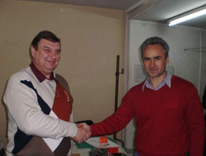 Депутат Законодательного Собрания Ростовской области, первый секретарь Ростовского-на-Дону ГК КПРФ Бессонов Евгений Иванович вручил победителю соревнований - Олегу Когланову - медаль ЦК КПРФ "130-летию со дня рождения И.В. Сталина".