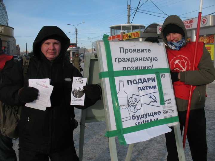 Несмотря на 25 градусный мороз и пронизывающий ветер молодые активисты провели мероприятие, раздали антиалкогольные листовки прохожим. В нашей стране с вымирающим и деградирующим от алкоголя населением антиалкогольная пропаганда – важнейшее необходимейшее условие спасения страны. К несчастью, из политических сил мало кто обращает на это внимание. Более того, власти создают все условия для того, чтобы "низшие слои населения", как они именуют простых людей, спивались, а "высшие слои" получали от этого наибольшую выгоду. Одни из немногих борцов за трезвость – коммунисты.