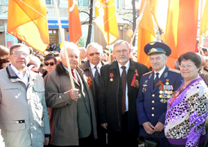 Ко Дню Победы поздравления коммунистов прозвучали по телевидению и радио. На площади имени В.И.Ленина были оформлены 6-метровые плакаты - призматроны с меняющимися изображениями Знамени Победы с надписью «Мы помним и чтим Знамя великой Победы!», с портретами коммунистов-полководцев Победы во главе с И.В.Сталиным, поздравлением от обкома КПРФ.