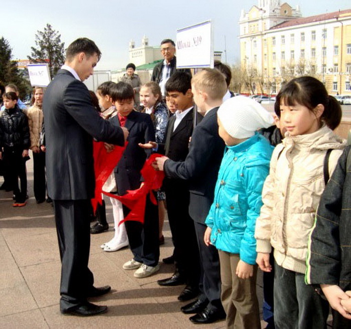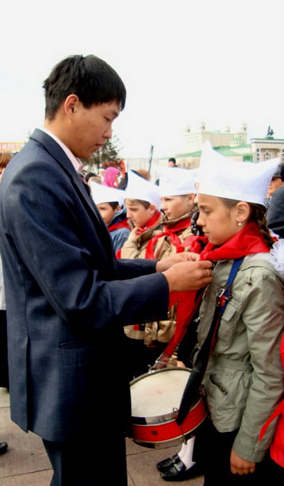 Построение отрядов состоялось 19 мая на площади Советов в Улан – Удэ. Командиры звонко рапортовали председателю региональной детской организации «Пионеры Бурятии» Арсену Цыренжапову о своей готовности. Члены Союза коммунистической молодёжи раздали будущим пионером один из главных символов принадлежности к этой детской организации красные галстуки. Несколько волнительных моментов и из уст ста участников церемонии прозвучало торжественное обещание жить честно, учится настойчиво, всегда выполнять пионерские законы, уважать старших и беззаветно любить свою Родину. Под звуки барабанной дроби ветераны пионерского движения, и молодые комсомольцы повязали алые галстуки ребятам, сделавшим может быть первый в своей жизни, но очень важный выбор. С праздником Днём пионерии ребят поздравили первый секретарь БРО ПП КПРФ Вячсеслав Мархаев. Обращаясь к ребятам и их наставникам он в частности сказал: