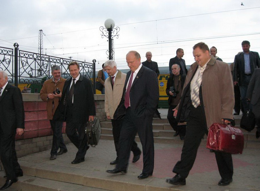 Утром 23 сентября в Белгород прибыл Председатель Центрального Комитета КПРФ Г. А. Зюганов. На вокзале Геннадия Андреевича встречали находящиеся сейчас в Белгороде члены Президиума ЦК Ю.В. Афонин и П.В. Романов, депутат Государственной Думы от партийной организации Белгородской области С.В. Муравленко, первый секретарь Белгородского обкома КПРФ В.А. Шевляков, большая группа комсомольцев.