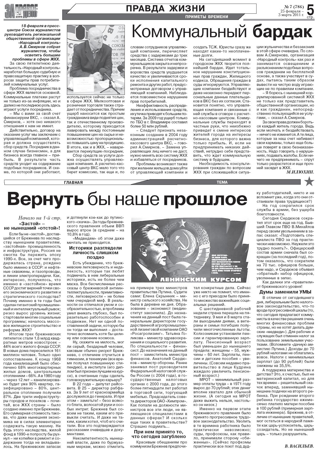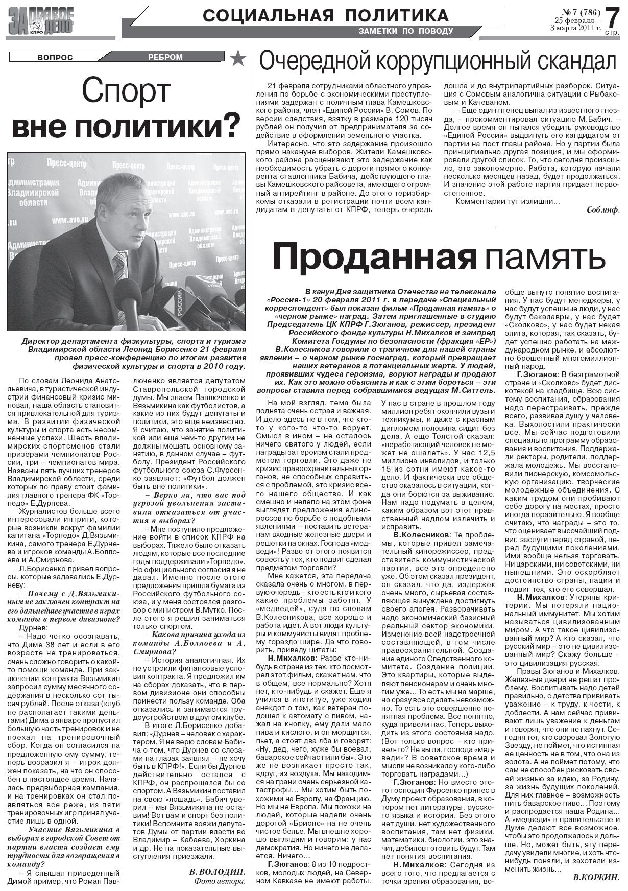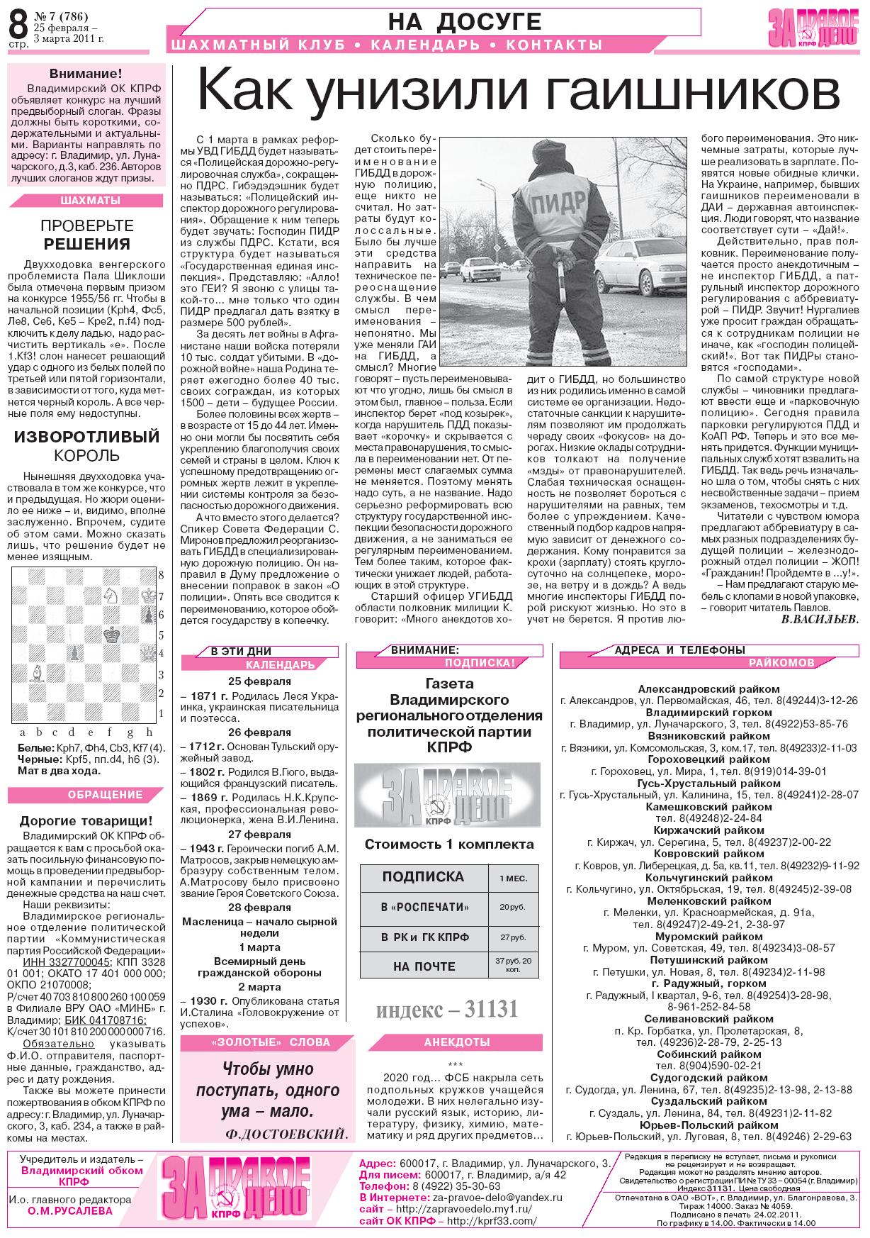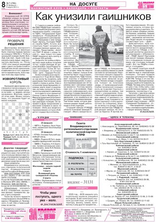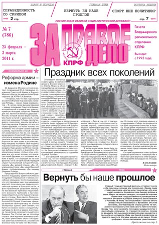 Очередной номер газеты Владимирского ОК КПРФ "За правое дело" №7 (786) 2011