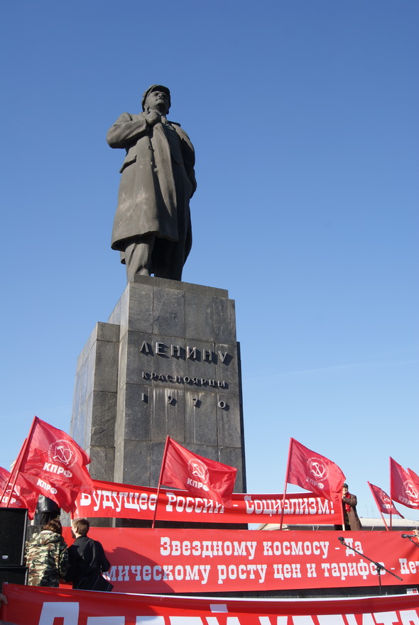 Красноярцы по призыву городского комитета КПРФ пришли на площадь Революции к памятнику В. И. Ленину на митинг в честь 50-летия первого в мире полёта в космос. Этим человеком был гражданин Советского Союза, коммунист Юрий Гагарин. Акция прошла под девизом: «Звёздному космосу – да! «Космическим ценам – нет!».