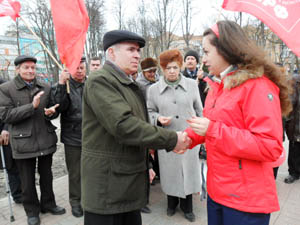 Памятные медали ЦК КПРФ были торжественно вручены ветеранам партии Г.М.Евсеевой, Т.В.Ефимовой, А.К.Степанову, ветерану труда В.Г.Шершебневой. Комсомольцы возложили цветы к памятнику К.Э.Циолковского.