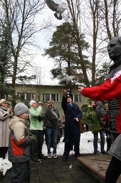 Под музыку, исполняемую духовым оркестром «Ретро», на памятник Ю.А.Гагарину установили мемориальную доску, изготовленную на средства жителей микрорайона Гагарина и подаренную городскому округу Балашиха, и возложили цветы. И теперь каждый, кто приходит к памятнику Ю.А. Гагарину в одноименном микрорайоне городского округа Балашиха, может прочитать такие слова:
