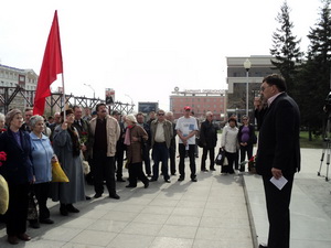 - Современные продажные политики предлагают вынести тело Ленина из Мавзолея, - заявил в своем выступлении Андрей Сартаков, первый секретарь Барнаульского горкома КПРФ.- сегодня выяснилось, что оказывается памятник на пл. Октября некому отремонтировать. Только за два последних дня варвары отбивали куски облицовки постамента памятника, и мы были вынуждены его ремонтировать. Мы знаем, кто стоит за этими актами, вандализма. Раньше с такими проблемами мы не сталкивались, и погром памятника, по нашему мнению связан с инициированной краевой администрацией компанией по переименованию площади Октября в Театральную и сносе памятника Ленина.