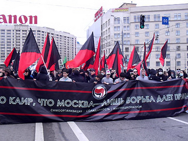 Затем, по завершении своего участия в шествии КПРФ, группы левых активистов переместились на Трубную площадь, чтобы принять участие в шествии до Чистопрудного бульвара. Улицы пестрели красными знаменами различных организаций – Российского социалистического движения, Революционной рабочей партии, Левого Фронта. Вторая акция завершилась митингом у памятника А.С. Грибоедову.