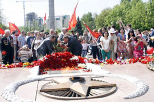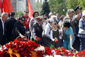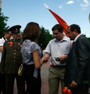 Митинг окончен, и сразу посуровели лица, склонились знамена. В скорбном молчании собравшиеся подошли к Вечному огню и памятнику защитникам Воронежа. Возложив сотни живых цветов, участники акции почтили память погибших за свободу и независимость Отчизны воинов Красной Армии.