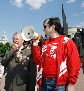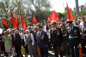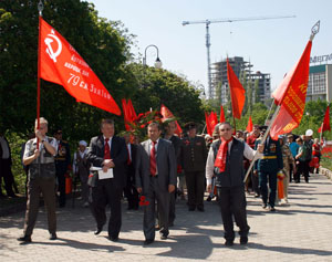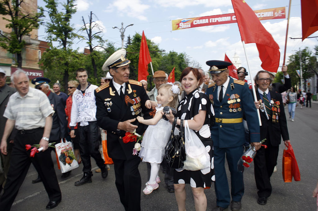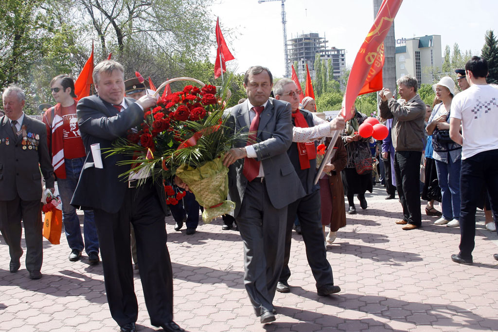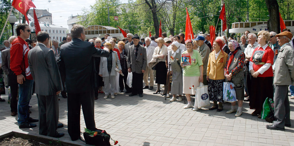 Сотни людей, собравшихся на площади Победы, горячо приветствовали друг друга и поздравляли с праздником, с воодушевлением пели песни военных лет. Затем состоялся митинг, на котором выступили первый секретарь обкома КПРФ, руководитель фракции коммунистов в областной Думе С.И. Рудаков, активисты Союза советских офицеров Б.В. Новиков, В.А. Кисленко, А.П. Смахтин, известные хозяйственные руководители, сохранившие верность социалистическому выбору – Г.В. Костин, А.С. Голиусов, М.И. Рукавицын и другие воронежцы. Говорили о непреходящем значении Победы, о вкладе в неё фронта и тыла, об огне сражений и боли утрат, о послевоенном восстановлении страны из руин, о трудностях и лишениях тех лет. Но самое страшное – то, что творится сегодня, война нынешней буржуазной власти с собственной историей, попытки доказать, что Советский Союз не был архитектором Победы, уравнять фашизм и социалистический строй. Все честные граждане глубоко возмущены, что даже накануне такого светлого праздника по центральным каналам телевидения показывают фильмы, порочащие советских солдат и офицеров. Если так называемым «десталинизаторам» дать волю, может дойти до преследования ветеранов, которые наденут свои боевые награды с изображением И.В. Сталина. Поэтому мерзавцы и подлецы, предатели нашей Родины должны получить и получают суровый отпор.