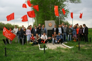 После этого колонна из 15 автомобилей, украшенных партийной атрибутикой, в сопровождении ГИБДД поехала к памятнику расстрелянным Советским гражданам, где комсомольцы четырёх областей возложили цветы. Первый секретарь Орловского обкома комсомола А.Лупин провёл экскурсию по этому месту и рассказал историю появления памятника погибшим.