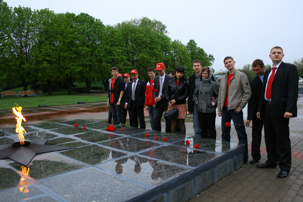 Начался автопробег с возложения цветов к мемориалу Вечный Огонь в Белгороде. Комсомольцы почтили память погибших воинов минутой молчания. Перед ребятами выступил первый секретарь Белгородского обкома КПРФ В.А.Шевляков.