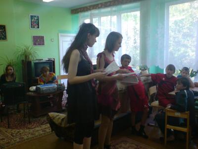 В целом, викторина проходила в достаточно веселой и занимательной форме. После просмотра видеоролика все участники в зависимости от возраста разделились на 2 группы. Ребята постарше отвечали на вопросы, разгадывали кроссворд. Самое необычное и, наверное, сложное для них задание заключалось в том, чтобы, прослушав аудиозапись знаменитой песни о Ю.А. Гагарине «Знаете, каким он парнем был!», сложить её текст из отдельных строчек. Малыши угадывали загадки, рисовали картинки. В одном из конкурсов каждой команде нужно было сделать и защитить рисунок на тему «Путь к Победе».