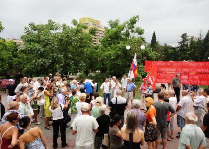 Митинг, который проходил с 11 до 13 часов в сквере возле ЦУМА, напротив ЖД вокзала собрал более ста человек из разных районов Сочи, пострадавших от олимпийского переселения.