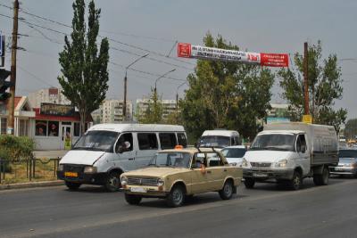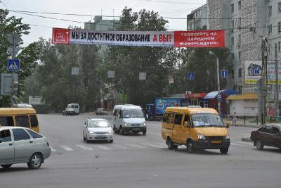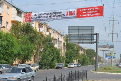 Растяжки КПРФ с основными вопросами Народного референдума были размещены на центральных улицах Астрахани.