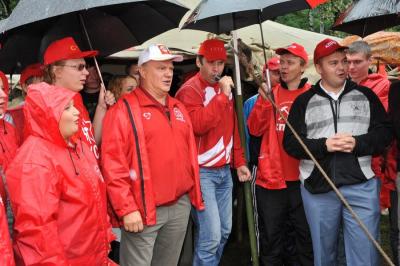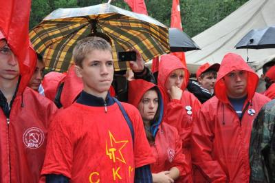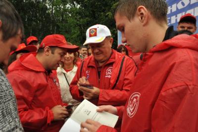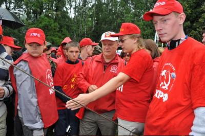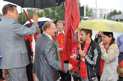 Следующий пункт повестки дня визита Г.А. Зюганова - участие в слете молодежного актива движения «Народное ополчение» и комсомольцев Центрального федерального округа. Несмотря на проливной дождь, ребята очень тепло приветствовали Геннадия Андреевича, показали ему свой лагерь возле поселка Гать. «Конечно, погода нас подводит, но мы с вами - настоящие ополченцы, которые не боятся плохой погоды», - пошутил лидер КПРФ.