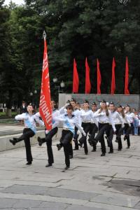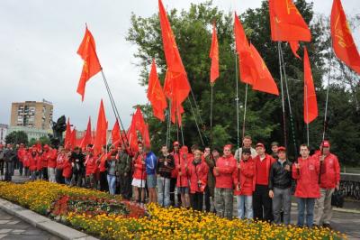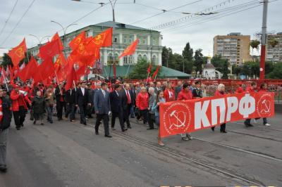 Затем колонна во главе с Председателем ЦК КПРФ, лидером «Народного ополчения» Г.А. Зюгановым под красными флагами двинулась по улицам города. Впереди шел духовой оркестр, исполнявший мелодии советских песен. Комсомольцы скандировали лозунги: «Красные в городе!» и «Зюганов – наш президент!»