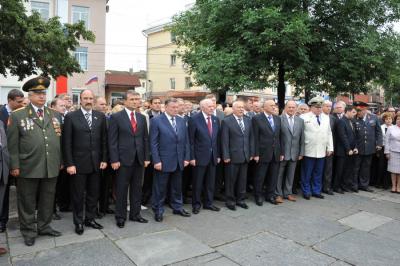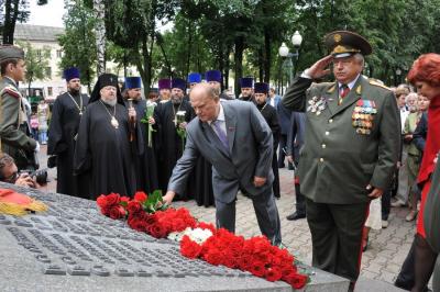 Утром у стелы в честь 400-летия основания Орла, воздвигнутой у слияния рек Ока и Орлик, состоялся многолюдный митинг. Он был посвящен 68-й годовщине освобождения города от немецко-фашистских захватчиков. В торжественном мероприятии принял участие лидер КПРФ и «Народного ополчения» Г.А. Зюганов.