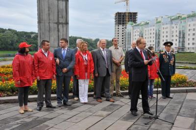 Митинг открыл первый секретарь Орловского обкома КПРФ В.Н. Иконников. Он подчеркнул, что сегодня на акцию собрались не только орловцы, но и гости из многих регионов России, участники комсомольского слета Центрального федерального округа. В.Н. Иконников напомнил о богатой истории Орла, о боевых и трудовых подвигах его жителей. Он рассказал, что здесь, на месте основания города, в 1966 году была заложена капсула с посланием к потомкам, которые будут жить в 2066 году. В нем говорится о том, как сыновья всех братских советских народов сражались и погибали за освобождение Орла, как после войны орловцы восстанавливали из руин свой прекрасный город. Как была создана мощная научная и промышленная база, которая, к сожалению, сегодня во многом утрачена.