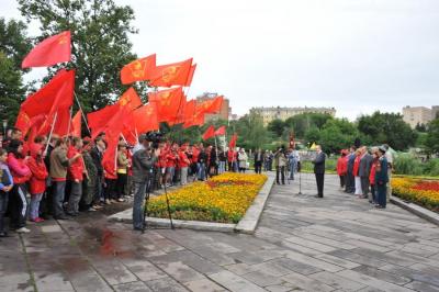Перед началом встречи Г.А. Зюганов вручил комсомольские билеты нескольким вновь принятым комсомольцам. Затем Геннадий Андреевич взял слово для выступления. Он поприветствовал ребят и напомнил, что слет проходит накануне знаменательной даты – очередной годовщины освобождения Орла от фашистских захватчиков. 5 августа 1943 года были освобождены Орел и Белгород, и Родина почтила этот подвиг первым за время войны праздничным салютом.