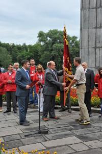 Затем состоялась торжественная церемония передачи Орловскому краеведческому музею Красного знамени и дипломов ЦК КПСС, Совета министров, ВЦСПС и ЦК ВЛКСМ, полученных орловцами за успехи во Всесоюзном социалистическом соревновании. Исторические реликвии вручили Председатель ЦК КПРФ Г.А. Зюганов и секретарь ЦК КПРФ, первый секретарь ЦК ЛКСМ Ю.В. Афонин. От имени музейного коллектива знамя принял заместитель директора Орловского краеведческого музея В.В. Скобелев.