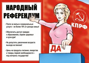 27 июля 2011 года группа членов КПРФ прибыла на катере в село Троица в 70 км. от г.Ханты-Мансийска по реке Обь. Во время всего пребывания агитационной группы в селе на катере через громкую связь воспроизводилась речь Г.А. Зюганова и патриотические песни СССР. В ходе проведения референдума было распространено 480 газет «Правда» и «Советская Россия». В референдуме приняли участие 45 человек. 40 человек взяли анкеты референдума с собой. В ходе общения с гражданами было установлено, что около 85% жителей села недовольны политикой «Единой Россией» во главе с В.В. Путиным. Очень позитивное влияние на людей производила речь Г.А. Зюганова и патриотические песни. Около 55% на декабрьских выборах готовы голосовать за КПРФ. В ходе общения не было граждан, готовых голосовать за «Единую Россию». 12 человек решили вступить в КПРФ.