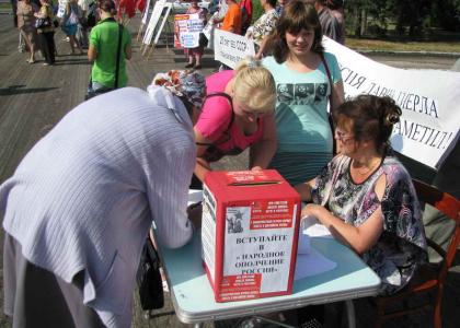 Целью акции, организуемой КПРФ, стали также сбор подписей по вопросам Народного референдума и запись в ряды Народного ополчения.
