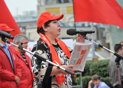 Второй секретарь ЦК ЛКСМ РФ Татьяна Смирнова зачитала текст резолюции митинга, которая была единогласно принята участниками акции.