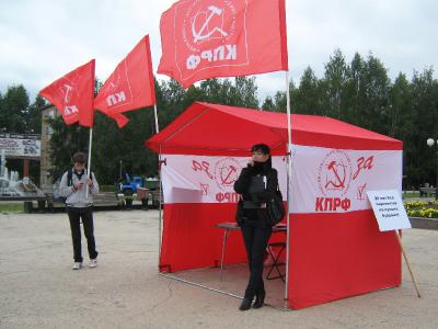В Сыктывкаре 19 августа местным отделением КПРФ было проведено два пикета. На одном из них функционировала также палатка КПРФ для голосования по вопросам Народного референдума. Несмотря на прохладную погоду, коммунисты столицы Коми бойко распространяли имеющуюся агитпродукцию.