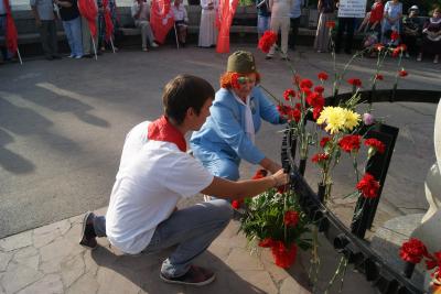 23 августа - особенная дата для жителей нашего города. В этот день у памятного знака «Мирному населению, погибшему в дни Сталинградской битвы» по инициативе Волгоградского обкома КПРФ, областной пионерской организации и «Союза комсомольских поколений» состоялся митинг в память о тех, кто отдал свои жизни в 1942 году в результате массированной бомбардировки фашистской авиации. Почтить память мирных жителей, ставших 69 лет назад живой мишенью для безжалостного врага, собрались более 200 человек.