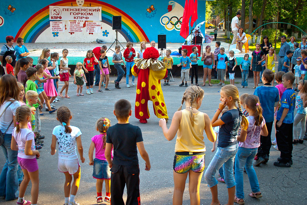 После выступлений летняя эстрада перешла в распоряжение творческого коллектива с игровой программой «Дорогою добра и знаний». Стоит заметить, что недостатка в зрителях не было – площадка перед сценой заполнилась практически сразу. К тому же в этот теплый летний день многие пензенцы пришли в парк просто так, чтобы отдохнуть всей семьей, а попали на праздник от коммунистов.