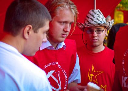 Тем временем в «красной палатке» активисты КПРФ вели продажу по советским ценам мороженого и газированной воды. Взрослые получали свежий спецвыпуск газеты «Правда» и брошюры КПРФ.