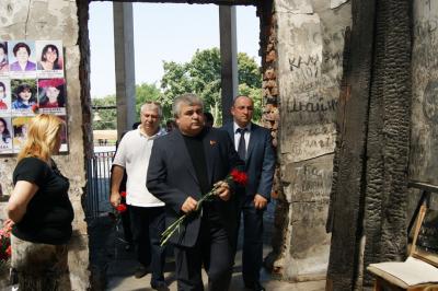 Почтить память жертв трагедии на территорию бывшей школы прибыли коммунисты республики. Делегация Северо-Осетинского республиканского отделения КПРФ под руководством секретаря ЦК КПРФ, первого секретаря Северо-Осетинского рескома КПРФ, руководителя фракции КПРФ в Парламенте РСО-Алания Казбека Тайсаева возложила венки и цветы к фотографиям тех, кто не смог в сентябре 2004 года выйти оттуда живым. Возложение цветов проходит в спортзале разрушенной террористами школы.