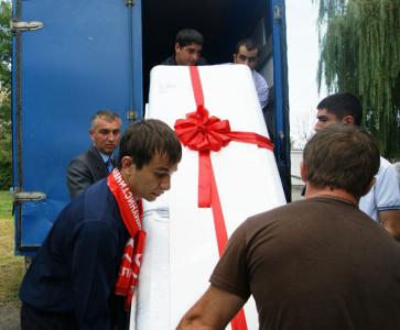 Очередной визит делегации Северо-Осетинского Рескома КПРФ в ст. Николаевская Дигорского района не обошелся без подарка. В состав делегации входили секретарь ЦК КПРФ, первый секретарь Северо-Осетинского Рескома КПРФ, руководитель фракции КПРФ в Парламенте РСО-Алания Казбек Тайсаев, депутат фракции КПРФ в Парламенте РСО-Алания Роберт Кочиев, второй секретарь Северо-Осетинского Рескома КПРФ Елена Разумкина, секретарь ЦК ЛКСМ РФ по международным вопросам Ильгам Гаписов и многие другие.