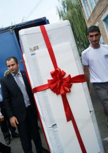 В этот раз детскому садику «Калинка» привезли так необходимый, для детского быта огромный холодильник. Детский сад уже давно нуждался в нем, но АМС ст. Николаевская никак не могли решить эту проблему. Череда подарков д/с «Калинка» - МФУ, стиральная машина, холодильник, вскоре увенчается ремонтом кровли. Фракция КПРФ в Парламенте РСО-Алания настояла на выделении детскому садику «Калинка» ст. Николаевская Дигорского района средств на ремонт ветхой кровли. Администрация детского сада выразила огромную благодарность Казбеку Тайсаеву лично и коммунистам республику за неослабеваемые внимания к ним.