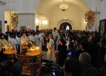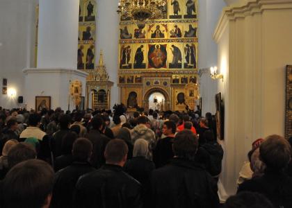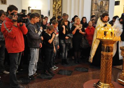 В храм приехал архиепископ Ярославский и Ростовский Пантелеимон, началась служба. Почтить память хоккеистов уже пришло много людей, большинство из которых – молодежь, у девушек на головах или плечах шарфы «Локомотива». Народ все подходит и подходит, у ящика со свечками огромная толпа, все ставят поминальные свечи, некоторые пришли с цветами. Сегодня панихиды будут отслужены во всех православных храмах и монастырях Ярославской епархии.